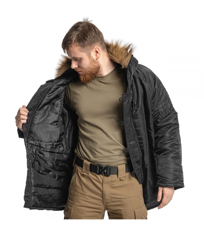 - Koudebeschermende parka met capuchon van synthetisch bont